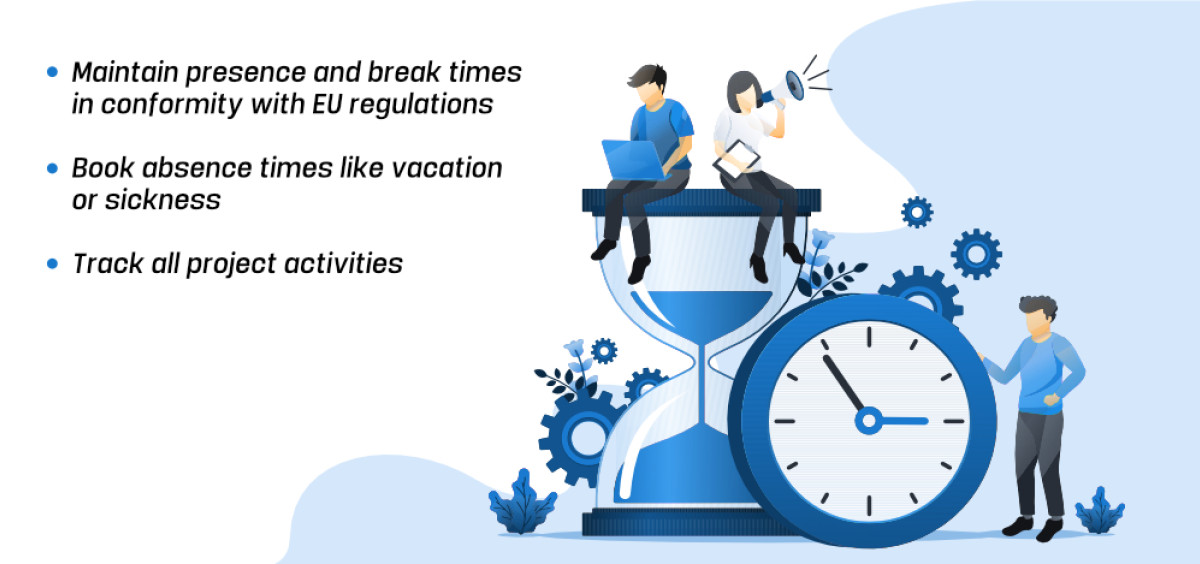 Working time management is an extensive topic, as many aspects have to be taken into account. For example, a distinction must be made between employees and external providers/freelancers. Furthermore, the company must clarify whether pure presence time or full-time recording is to be implemented. And last but not least, all of this must comply with the legal requirements that were detailed by the European Court of Justice last year and are currently being implemented in the individual EU countries.