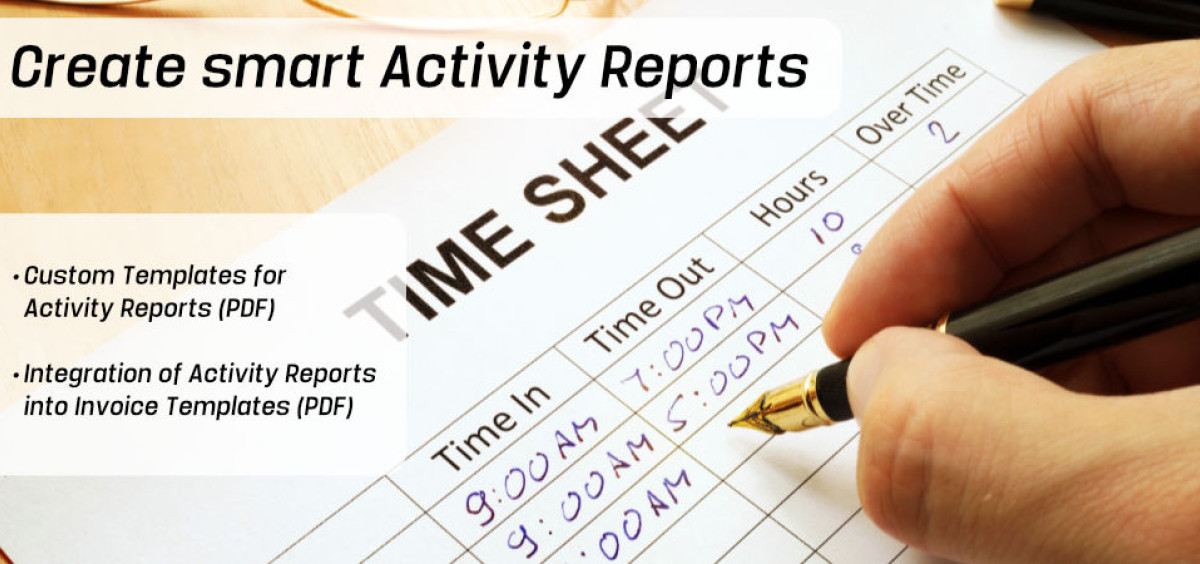 **With the foreknown 2.8 release, we are providing a number of new options for designing activity reports, integrating them into invoices or outputting them as separate PDF documents. This article introduces you to all the new features relating to the design and creation of activity reports.