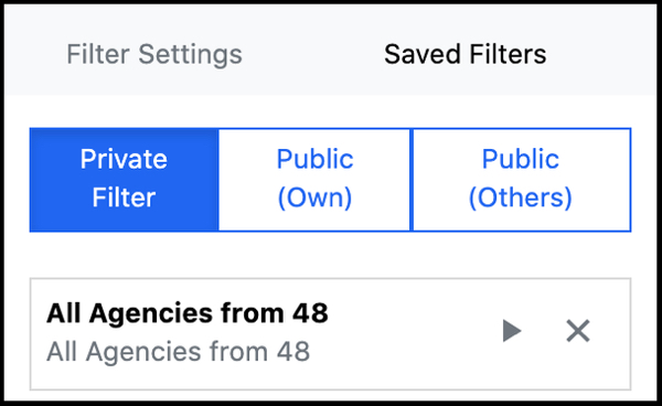 - Public ( Mine): All filters that have been created by the current user and marked as "Public".
